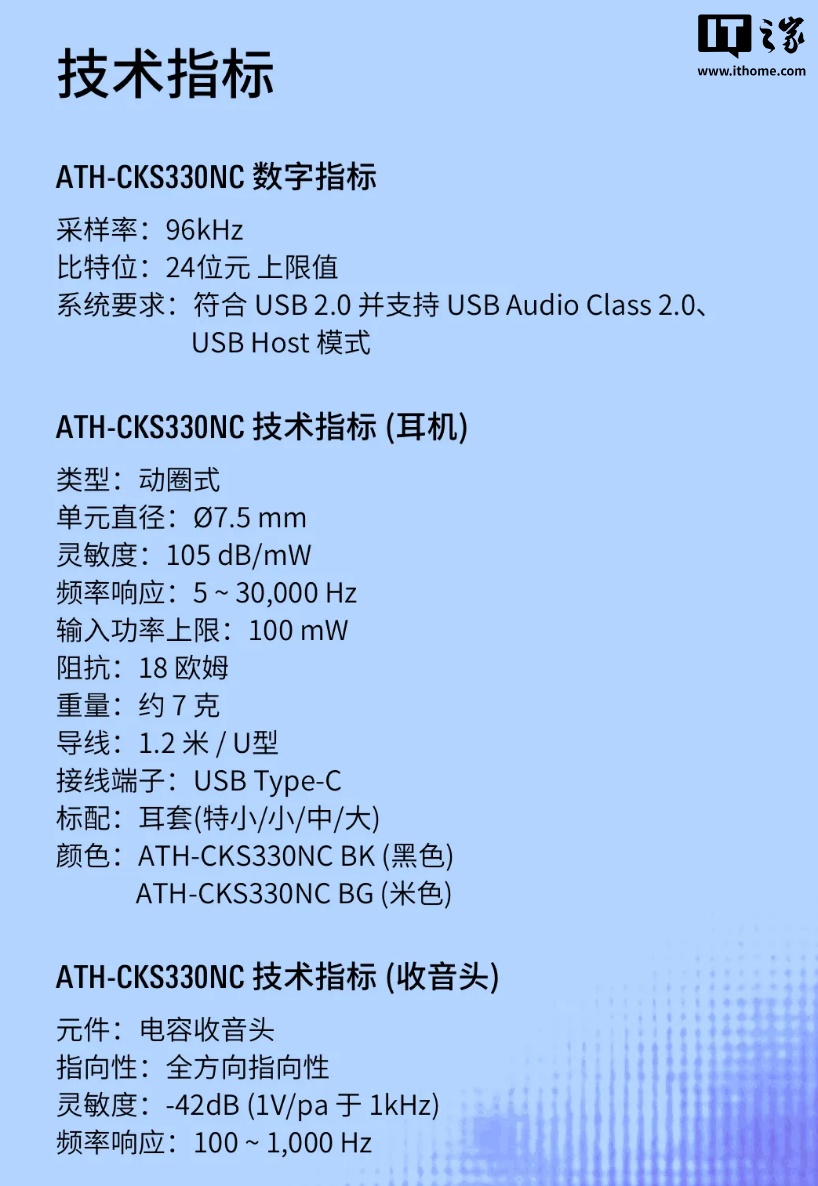 IT 之家 7 月 4 日消息,铁三角今日发布了一款 ATH-CKS330NC 入耳式降噪耳机,售价 399 元。
