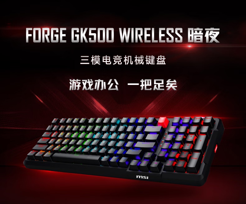 IT之家 7 月 5 日消息,微星 FORGE GK500 W 暗夜三模机械键盘已经在京东开售,定价 249 元,提供黑红、黑青两张版本可选,对应红轴和青轴版本。