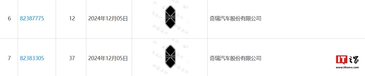 关于智界车标,作为参考:中国商标网信息显示,奇瑞汽车股份有限公司在 2024 年 12 月 05 日申请注册了智界图形商标,其中车标 LOGO 亮相。奇瑞此次申请的智界图形商标包括国际分类 12 和 37 两类,申请 / 注册号分别为 82387775 和 82383305。