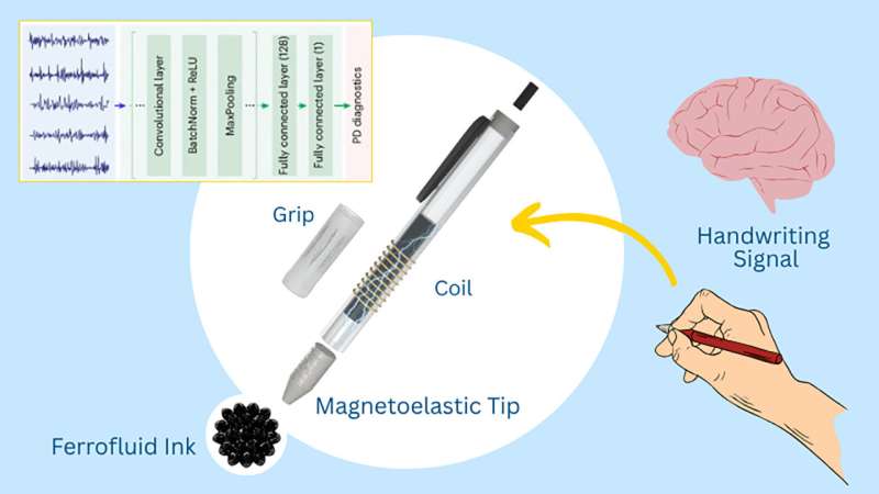 IT之家 7 月 6 日消息,据外媒 TechXplore 4 日报道,加州大学洛杉矶分校塞缪里工程学院的生物工程副教授陈骏(音译)带领团队研发出一款看似简单却颇具潜力的工具 —— 一种智能自供能的磁弹性诊断笔,可通过分析书写动作捕捉帕金森病的早期迹象。
