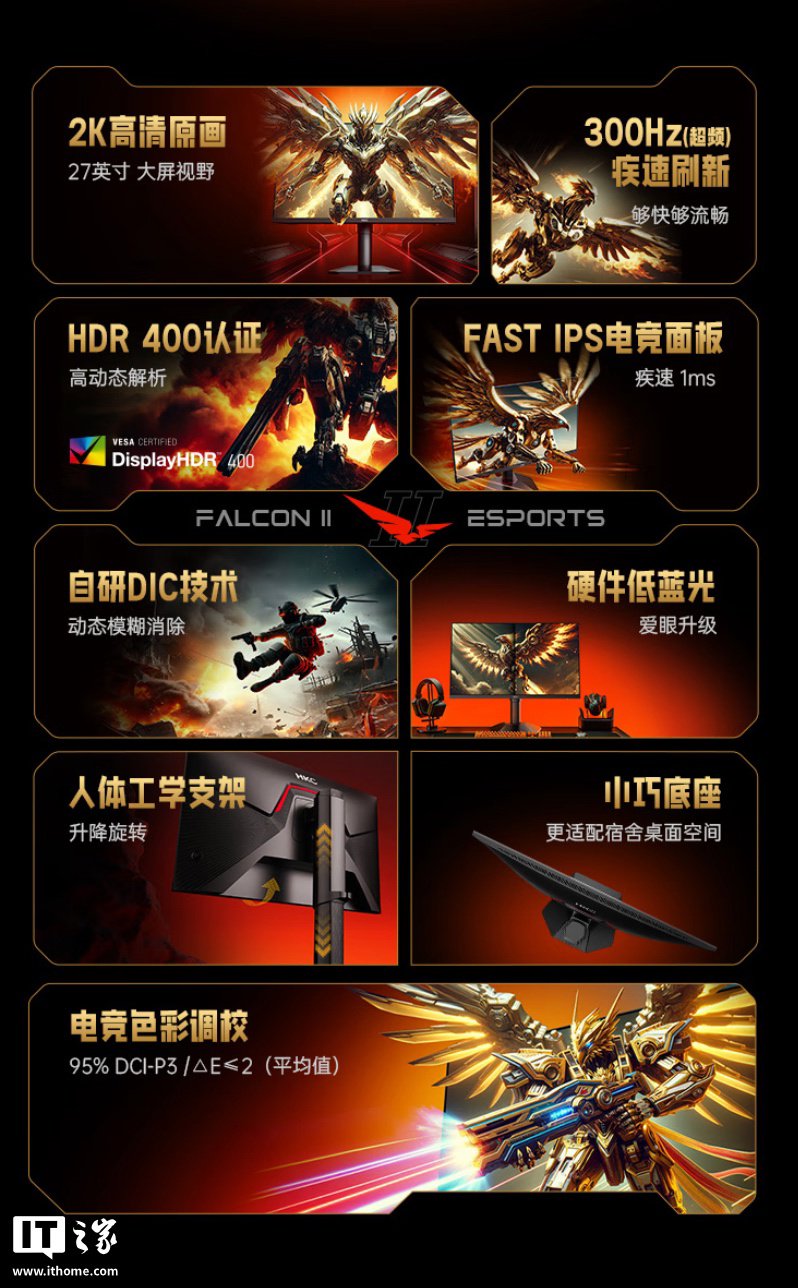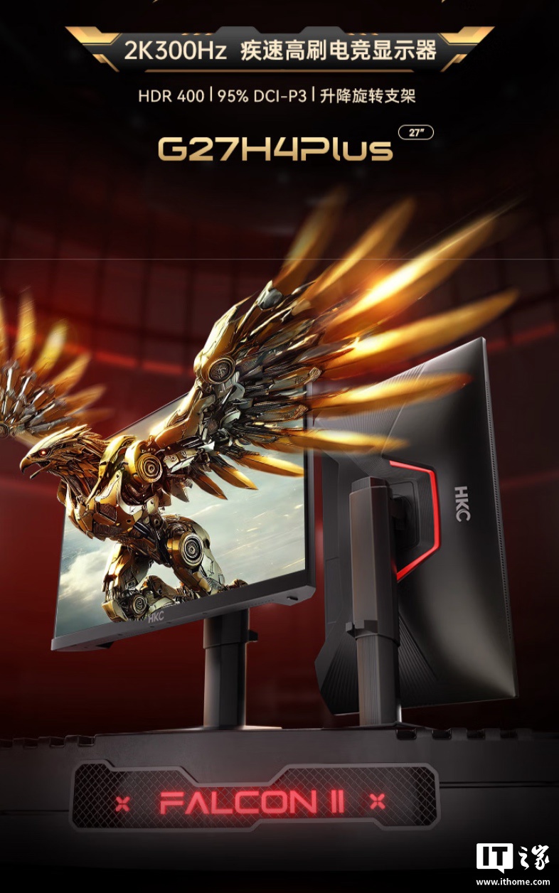 IT之家 7 月 7 日消息,HKC 现已推出一款型号为“G27H4Plus”的 27 英寸显示器,该机主打“2K 300Hz”,定价为 1199 元。