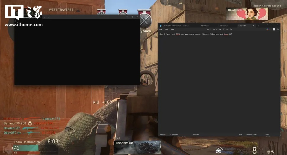 尽管如此,上周末已有部分玩家遭受攻击。在一段上传到 X 平台的视频中,一位主播在直播时被黑客攻击,桌面壁纸被迅速更换为动视律师的图像。更有意思的是,@LasagneManne 暴露了黑客所使用的工具,包括将玩家踢出服务器、启用“无敌模式”等选项,以及 RCE 按钮。希望动视能尽快推出补丁,解决这一问题。