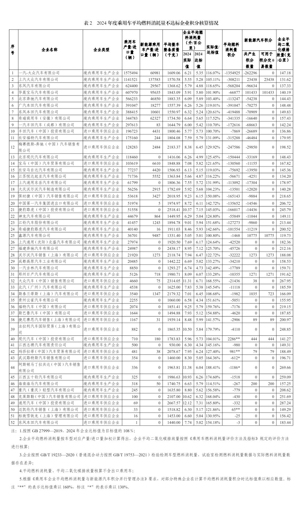 根据《乘用车企业平均燃料消耗量与新能源汽车积分并行管理办法》(工业和信息化部财政部商务部海关总署质检总局令第 44 号)、《关于修改〈乘用车企业平均燃料消耗量与新能源汽车积分并行管理办法〉的决定》(工业和信息化部财政部商务部海关总署市场监管总局令第 53 号)和《关于修改〈乘用车企业平均燃料消耗量与新能源汽车积分并行管理办法〉的决定》(工业和信息化部财政部商务部海关总署市场监管总局令第 64 号)要求,现将 2024 年度中国乘用车企业平均燃料消耗量与新能源汽车积分情况予以公告。