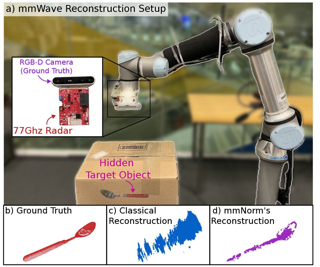 研究人员目前正努力提高分辨率和材料敏感性,进一步增加潜在的应用场景。在安全扫描或军事领域,mmNorm 技术无需打开包裹或箱子,可以重构隐藏物品的形状。这种能力对于仓库自动化、搜救甚至辅助生活环境中的人工智能机器人来说可能至关重要。