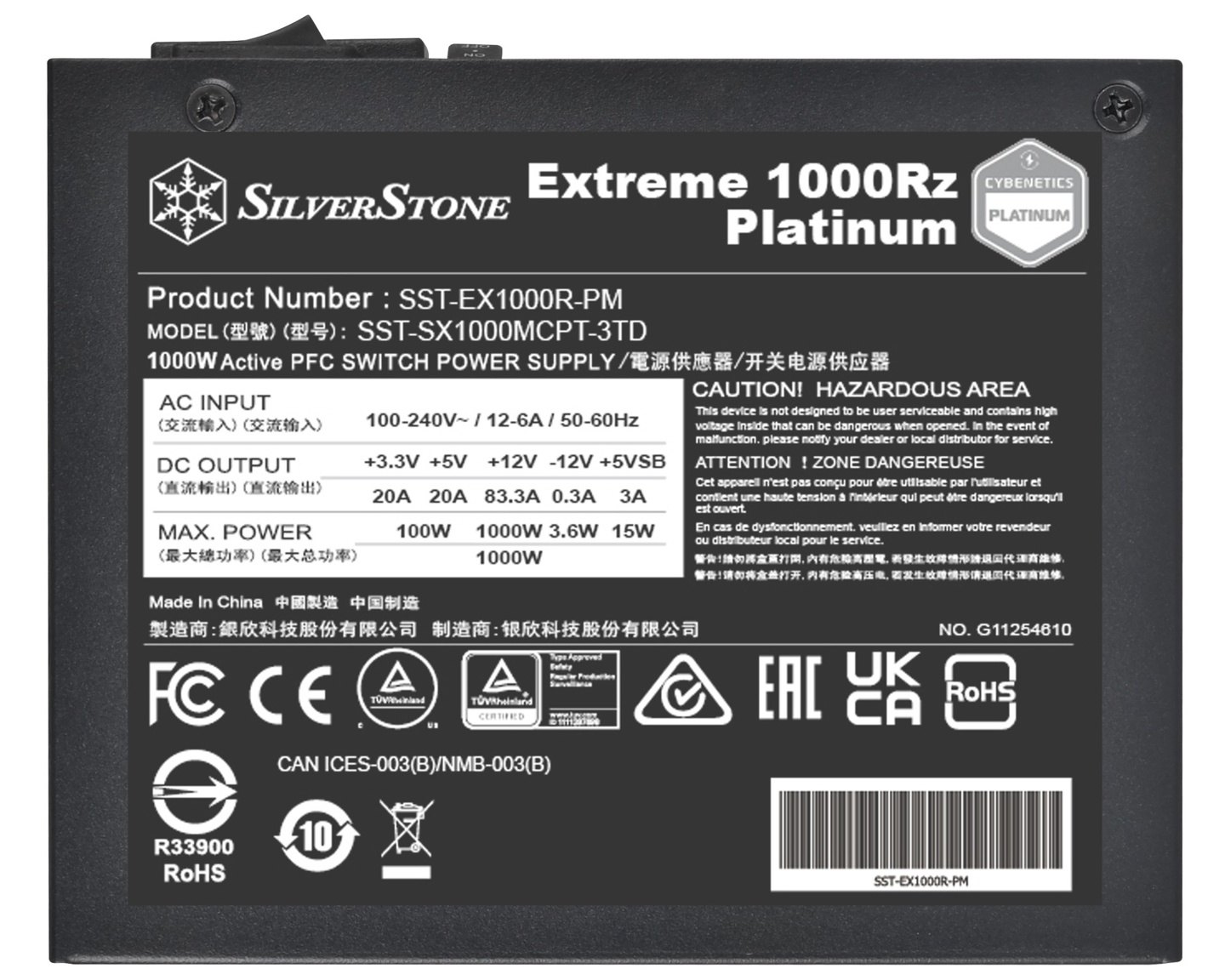 Extreme 1000Rz Platinum 符合英特尔 SFX 4.1 标准(IT之家注:提供原生 600W 12V-2×6 模组接口与线材),通过 Cybenetics 白金牌效率认证,功率密度达 1260.8 W/L。