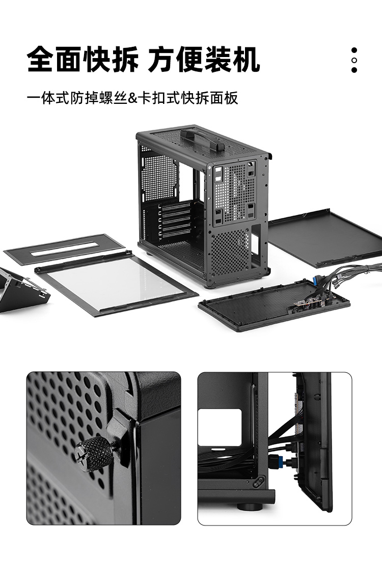 逻辑库 iF25 三维 388×200×340 (mm),前板采用时尚的斜交格栅设计,左侧板则为玻璃侧透(IT之家注:支持左右侧板互换,可另购 MESH 网孔侧板),各面采用卡扣式快拆面板和一体式防掉螺丝,简化了装机过程。