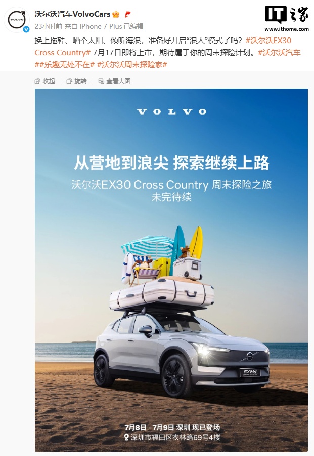 IT之家 7 月 9 日消息,沃尔沃 EX30 Cross Country 车型(下文简称:沃尔沃 EX30 CC)将于 7 月 17 日在国内上市。作为参考,目前国内在售沃尔沃 EX30 官方指导价为 20.08 万-25.58 万元。
