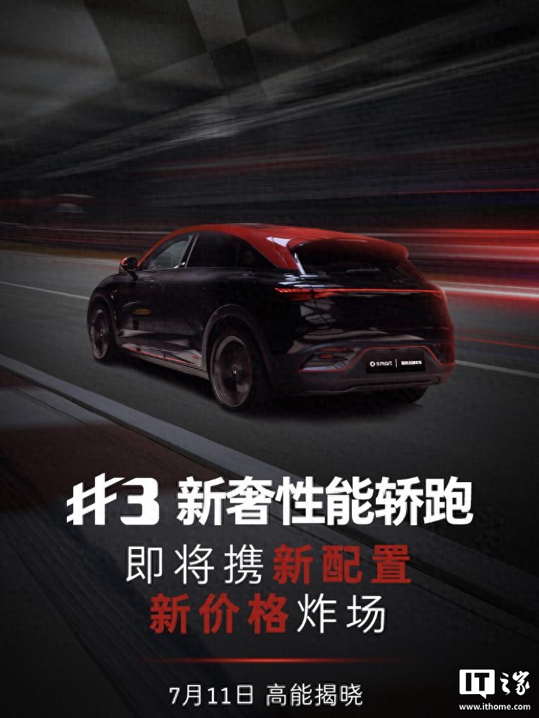 IT之家 7 月 9 日消息,smart 中国宣布,新款 smart 精灵#3 将于 7 月 11 日正式上市,官方称其将有新配置和新价格。smart 精灵#3 现款车型价格区间为 16.49 万-28.99 万元。