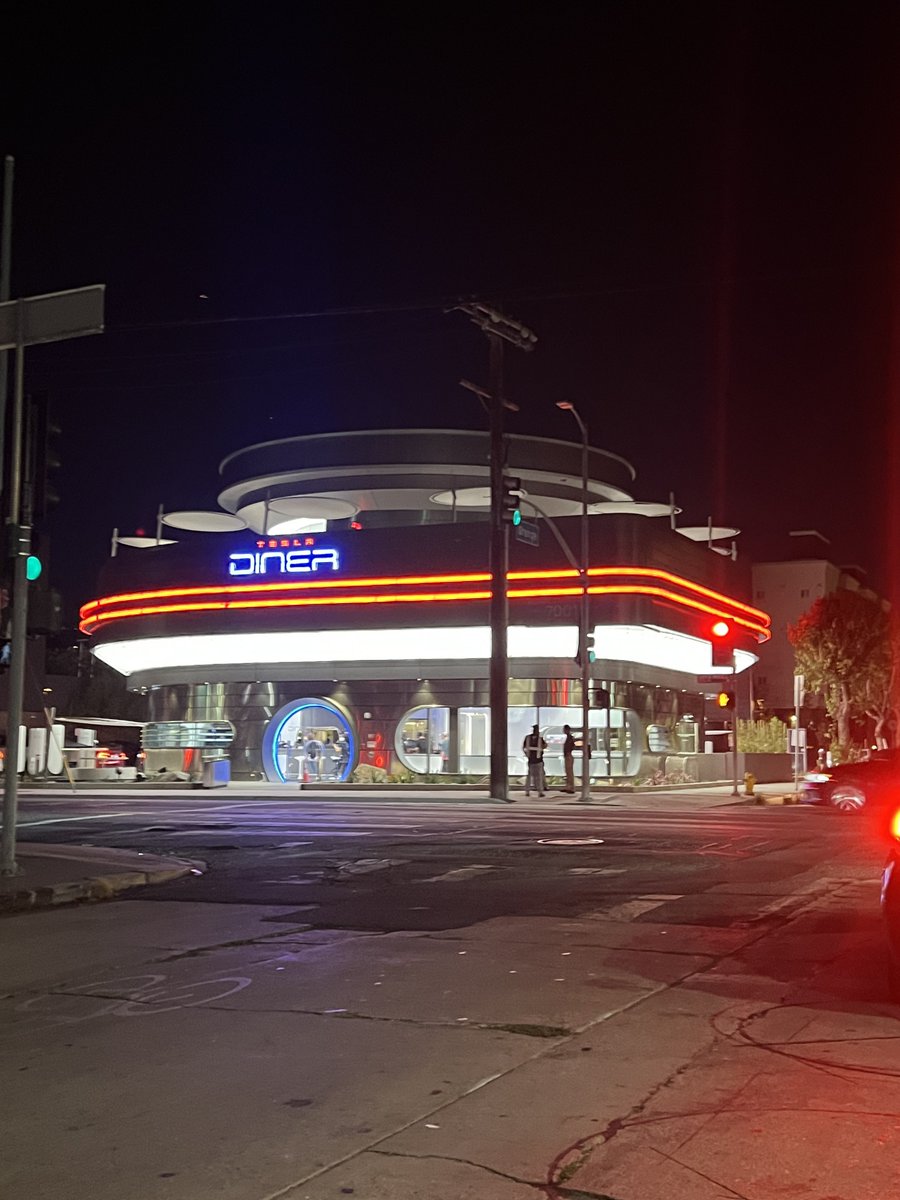 据介绍,该餐厅位于洛杉矶的圣莫妮卡大道,散发着“20 世纪 50 年代的复古魅力”,外观设计灵感来自上世纪流行的汽车影院,呈现出银色曲线造型,外立面的霓虹灯在夜晚闪耀夺目,餐厅内部充满“新鲜烤制的汉堡和奶昔的香味”。