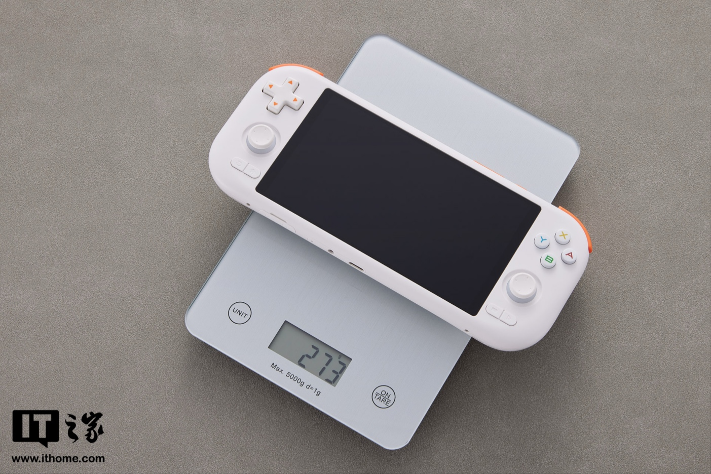 尺寸方面,MANGMI AIR X 的三围数据分别为 203.47 x 87.39 x 16.80mm,虽然官方称机身重量为 286g,不过IT之家实测重量为 273g。该机采用对称式人体工学设计,双手握持掌机时配重平衡分布,掌机两侧弧度圆润贴手。整机的握持感较为舒适。