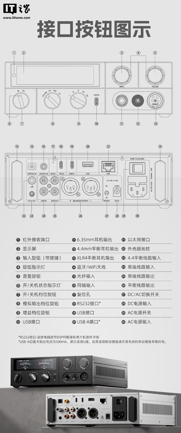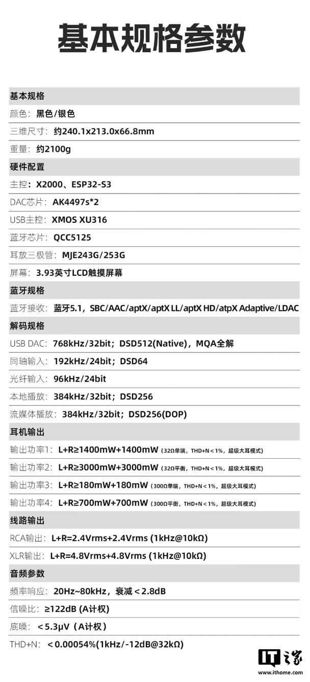IT之家附该耳放接口、硬件参数如下: