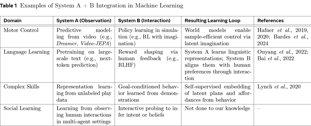 通过有效地整合两者,由系统 A 提供抽象结构、先验和压缩表示,帮助系统 B 高效规划。系统 B 则通过主动探索收集更优数据,为系统 A 提供实践验证。