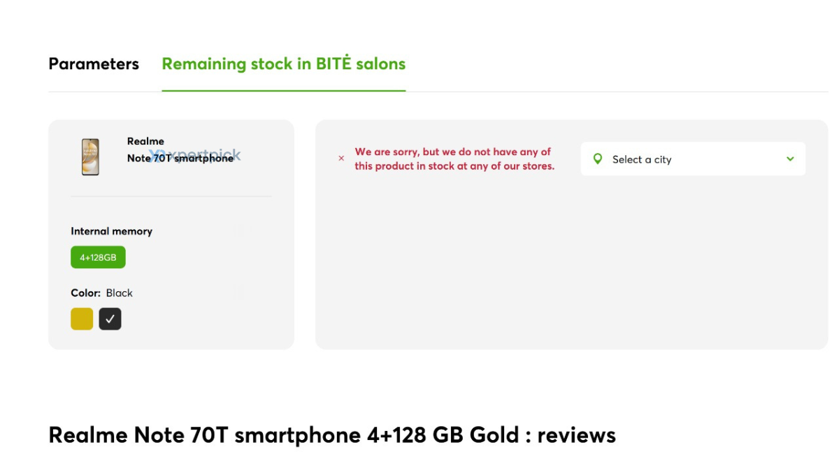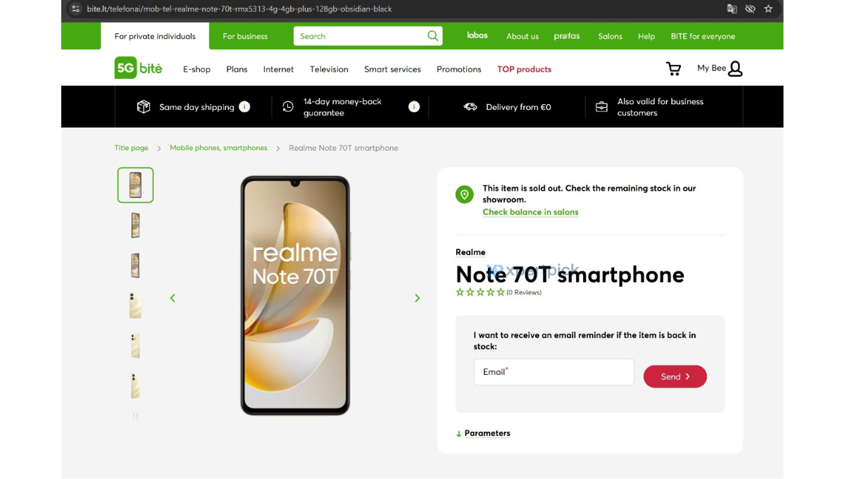 IT之家 7 月 11 日消息,科技媒体 xpertpicksd 昨日(7 月 10 日)发布博文,报道称在意大利零售网站 Bite.it 上,发现了 realme 真我 Note 70T 手机的踪迹。