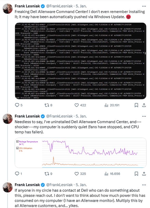 IT之家 7 月 11 日消息,科技媒体 borncity 今天(7 月 11 日)发布博文,报道称由于戴尔 Alienware Command Center(AWCC)软件原因,导致 Windows 系统 CPU 负载过高。