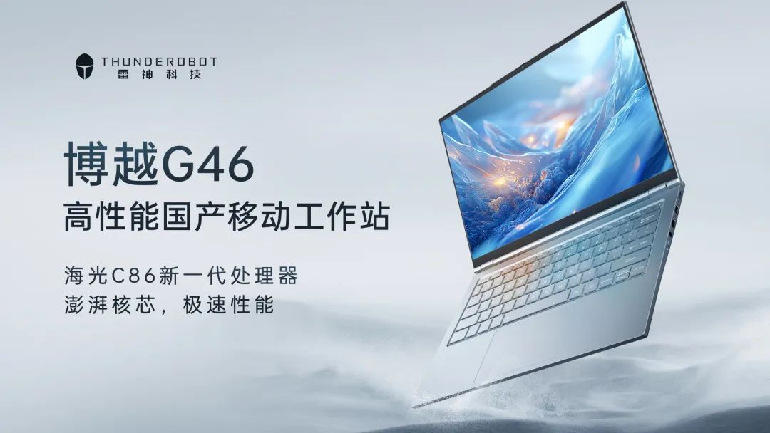 雷神科技分享的现场拍摄中有一张博越 G46-H 系列移动工作站的图片,显示该机型搭载海光 C86-4G 架构 3450M 八核 4.0GHz 处理器,配备 32GB DDR5 内存和 512GB PCIe 4.0×4 固态硬盘,屏幕分辨率为 1920×1200。
