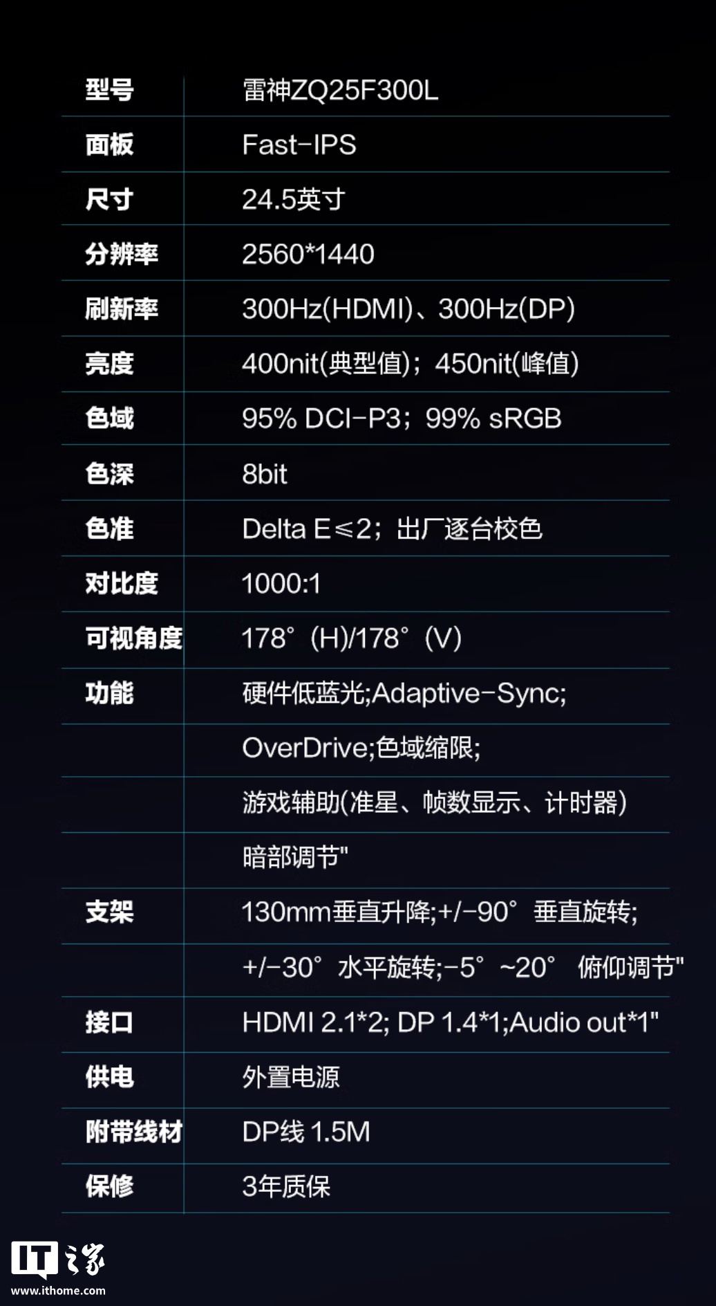 IT之家附显示器参数如下: