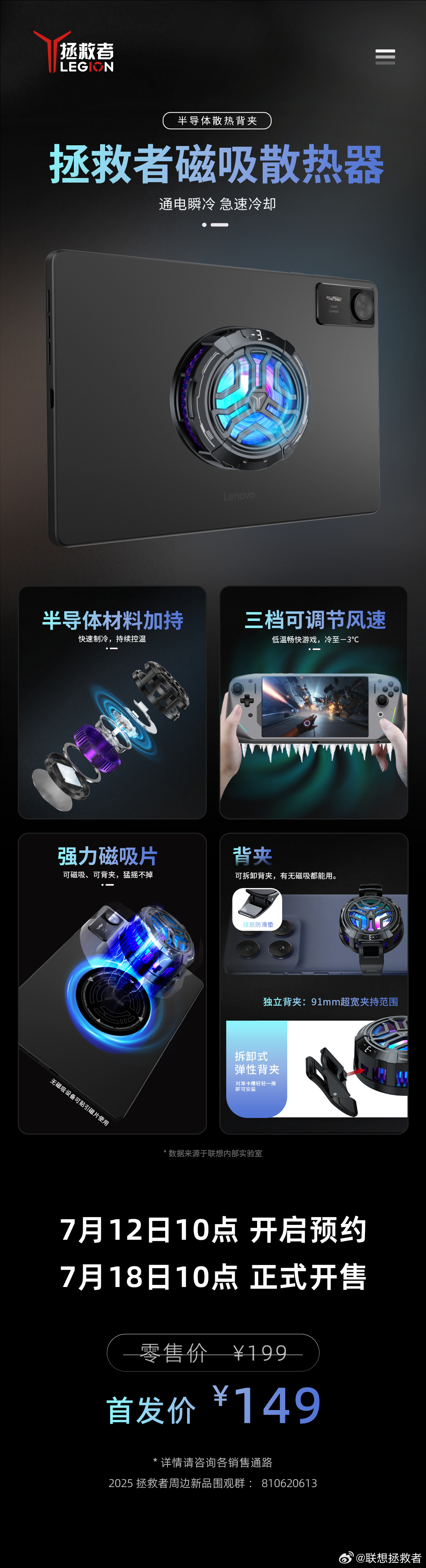 IT之家 7 月 12 日消息,除公路自行车、AR 智能眼镜之外,联想今天还推出了一款拯救者磁吸散热器,首发价 149 元,7 月 18 日开售。