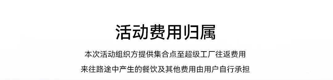 本次活动组织方提供集合点至超级工厂往返费用,来往路途中产生的餐饮及其他费用由用户自行承担