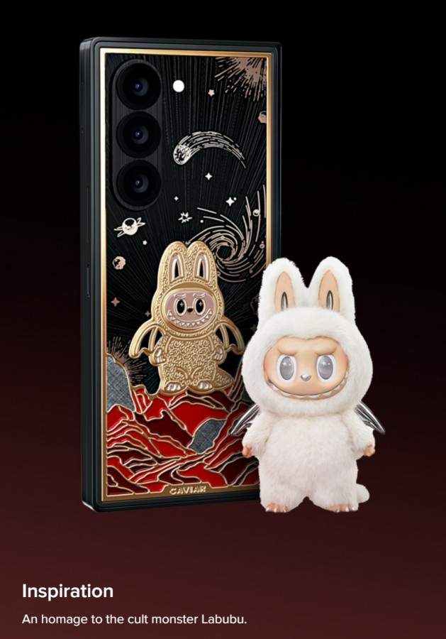 Cabubu 系列灵感来源于 Labubu,两款机型都采用了 24K 黄金,并配有珠宝级珐琅。Galaxy Z Fold7 Cabubu 版的设计呈现 Cabubu 与火星景观的搭配,而 Galaxy Z Flip7 Cabubu 版则将 Cabubu 与金星背景融为一体。