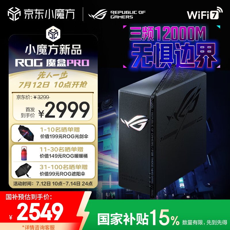 华硕 ROG 魔盒 Pro 电竞路由器现已上市,定价 2999 元,可享受 15% 国家补贴。