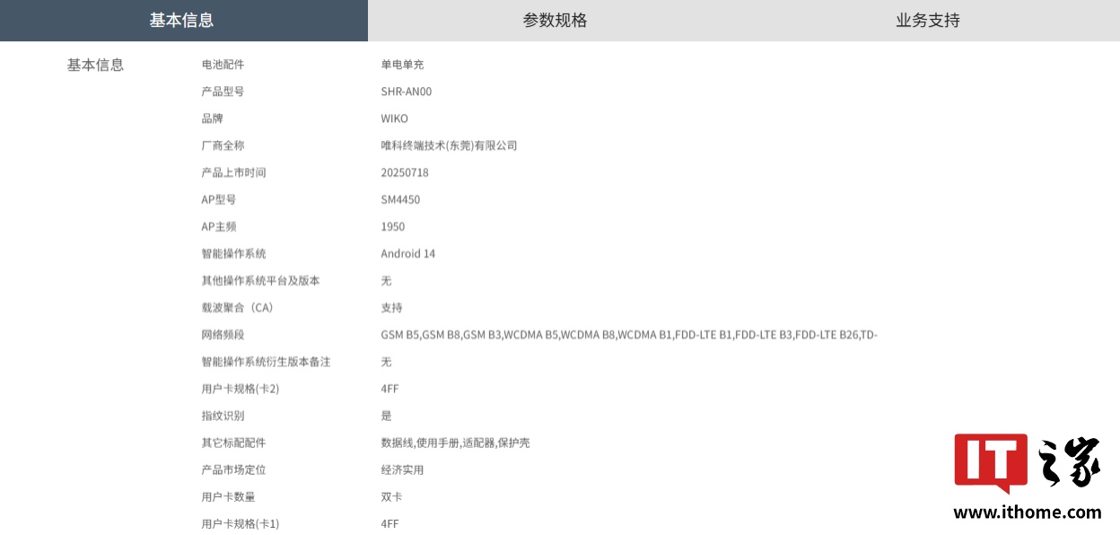 此外,型号为“SHR-AN00”的 WIKO Hi 畅享 80 Pro 手机已现身中国电信终端产品库。该机提供 8GB+256GB、12GB+256GB、12GB+512GB 三种存储规格,拥有星空黑(黑)、星海蓝、晨光白 3 种配色,产品零售价格 1599 元起。