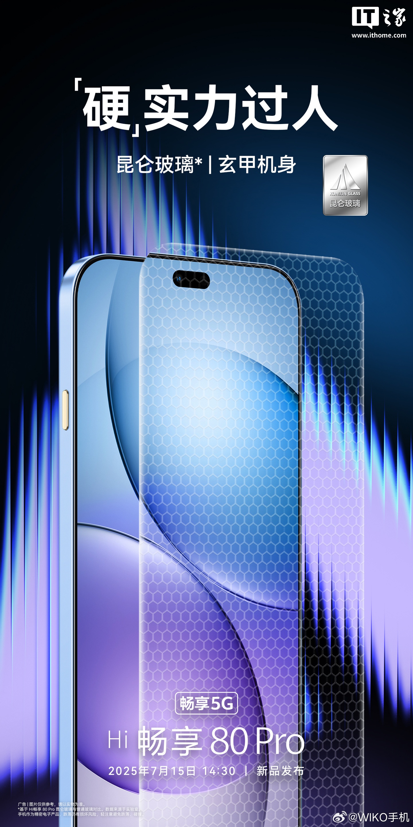 IT之家 7 月 13 日消息,WIKO 手机官方微博今日发文预热 Hi 畅享 80 Pro 手机。新机配备 OLED 臻彩护眼屏 + AI 柔光护眼灯,前者支持 2160Hz 高频 PWM 调光、硬件级低蓝光、夜间节律护眼。