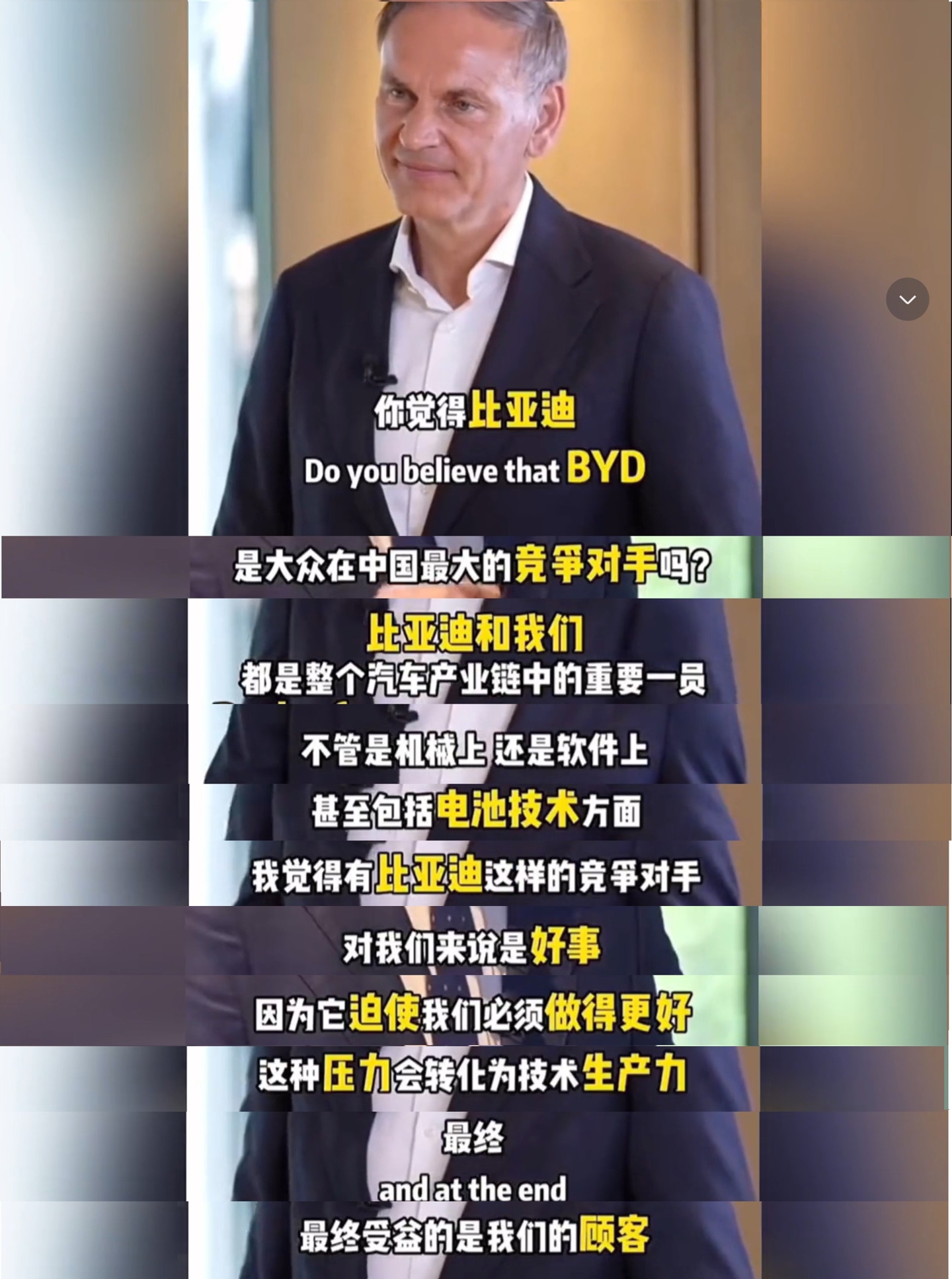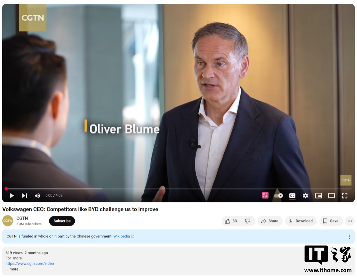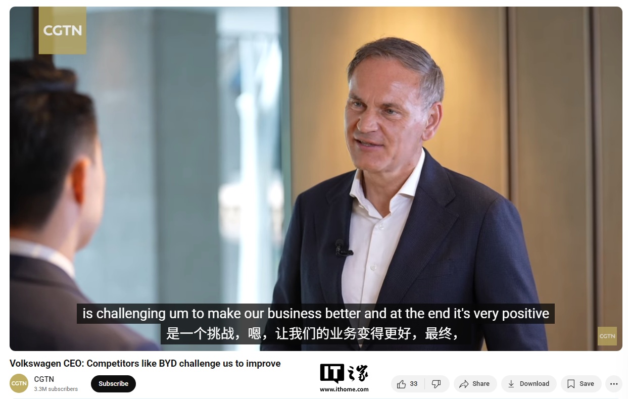 IT之家 7 月 13 日消息,最近两天网上热传一段关于大众集团全球 CEO 奥博穆接受采访的视频,他提到比亚迪等竞争对手促使大众不断改进。