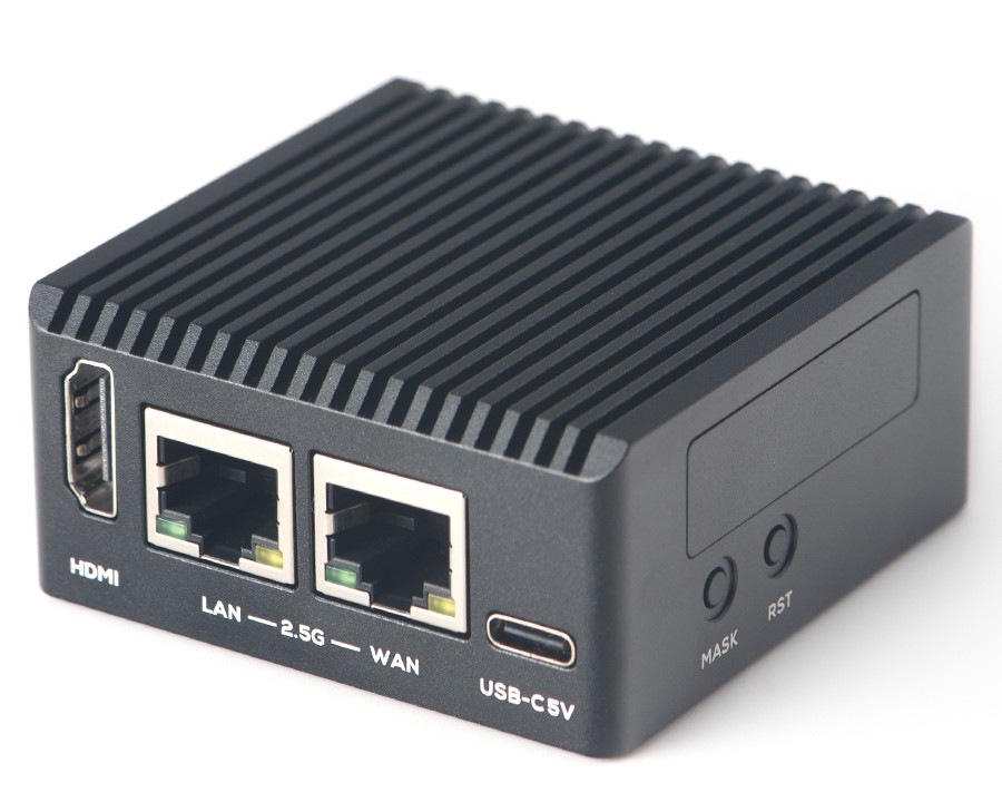 接口方面,NanoPi R76S 具备 1 个 USB-A 5Gbps、2 个 2.5GbE RJ45、1 个 HDMI 2.0、1 个 microSD UHS-I 读卡器、1 个 M.2 SDIO 无线网卡槽、1 组 8Pin GPIO、UART 和 1 个仅 5V 电源输入的 Type-C 接口。