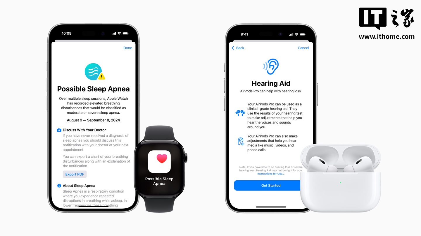 苹果 AirPods Pro 2 耳机“听力测试”与“助听器”功能于 2024 年 10 月 29 日首次推出,可为 18 岁以上的用户提供经过科学验证的听力测试结果、临床级别的个性化听力辅助,可自动应用于环境声音 / 音乐 / 视频和电话。
