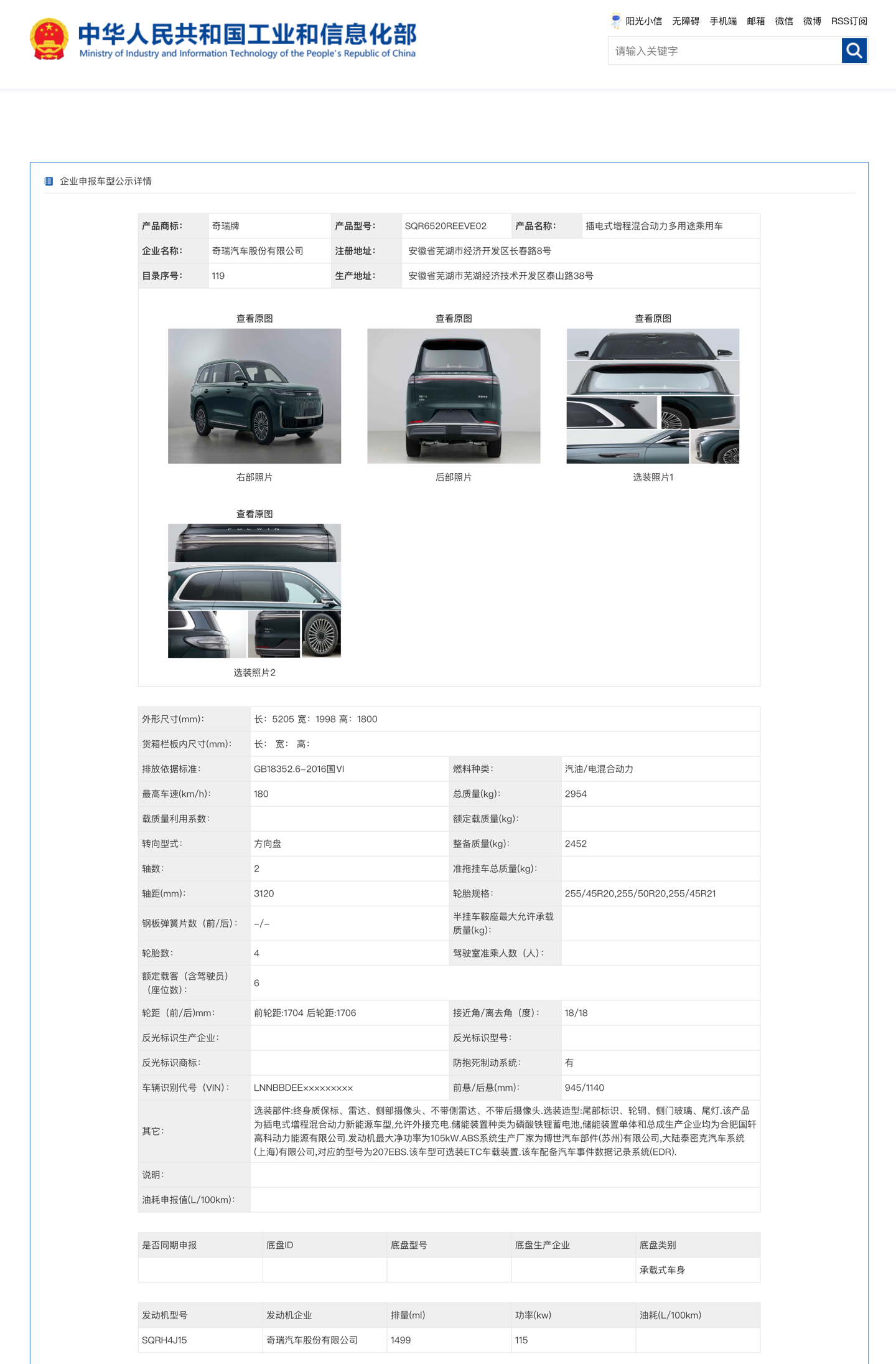 IT之家 7 月 16 日消息,工信部今晚发布了第 397 批《道路机动车辆生产企业及产品公告》,IT之家发现了奇瑞风云全新中大型增程 SUV—— 风云 T11 的申报信息。