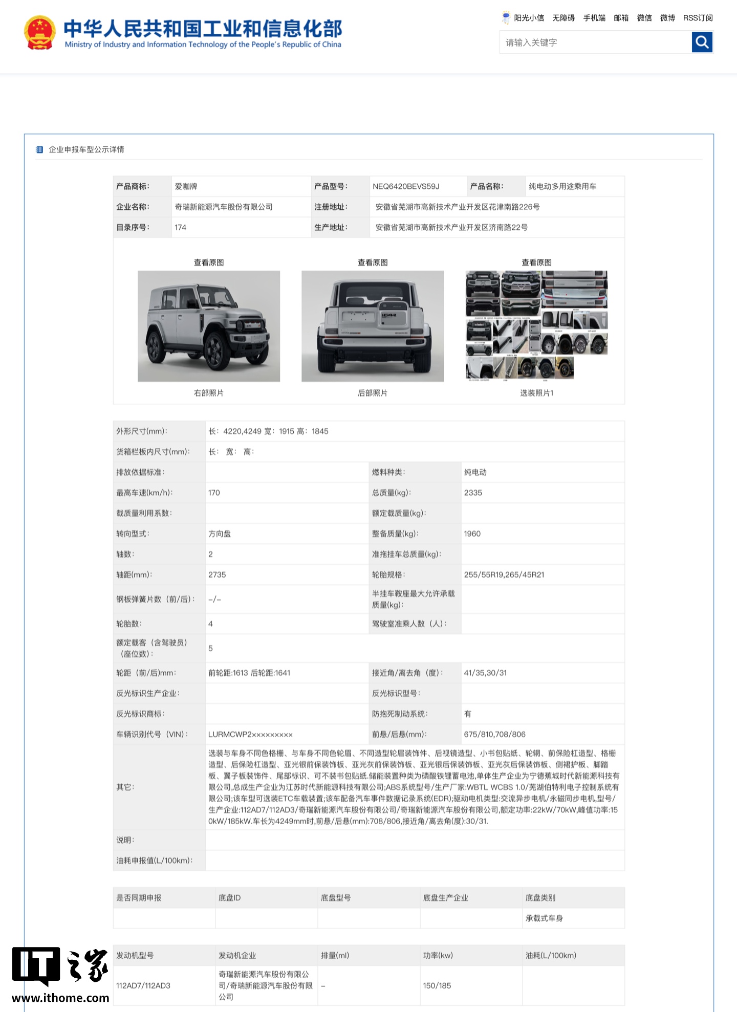 IT之家 7 月 16 日消息,第 397 批《道路机动车辆生产企业及产品公告》今晚发布,IT之家发现了奇瑞 iCAR V23S 的申报信息。