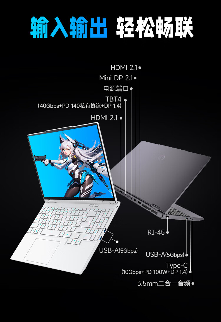 而在外部 I/O 端口方面,机械革命为耀世 15 Pro 配备双 HDMI 2.1、Mini DP 2.1、包含单雷电 4 的 3A2C USB、RJ45 有线网口和 3.5mm 二合一音频插孔。