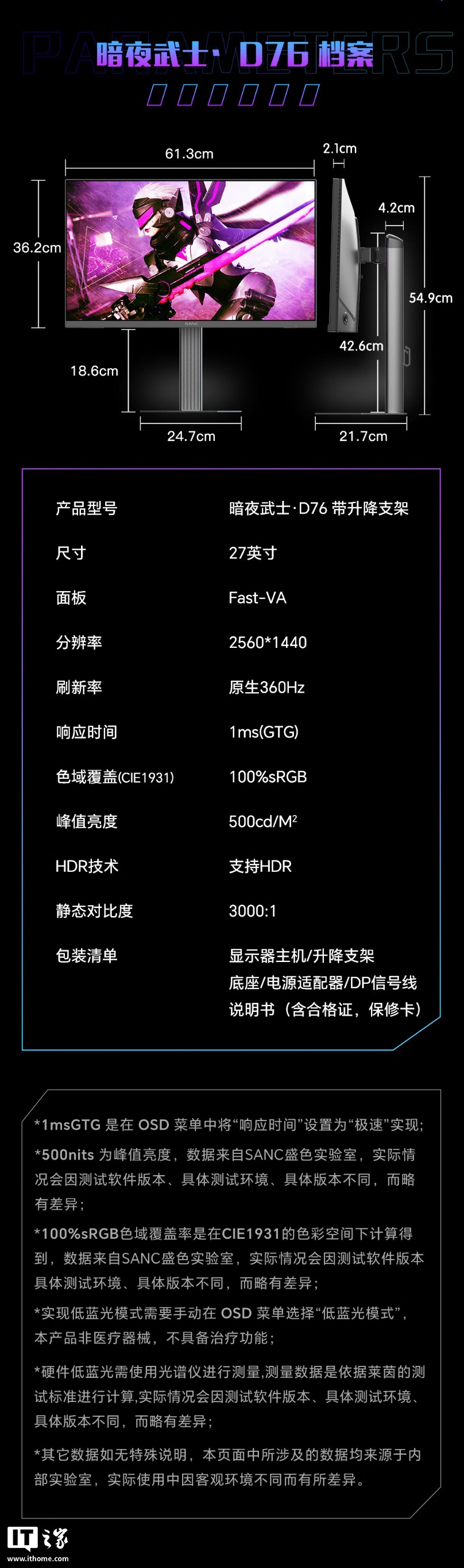IT之家附显示器参数如下: