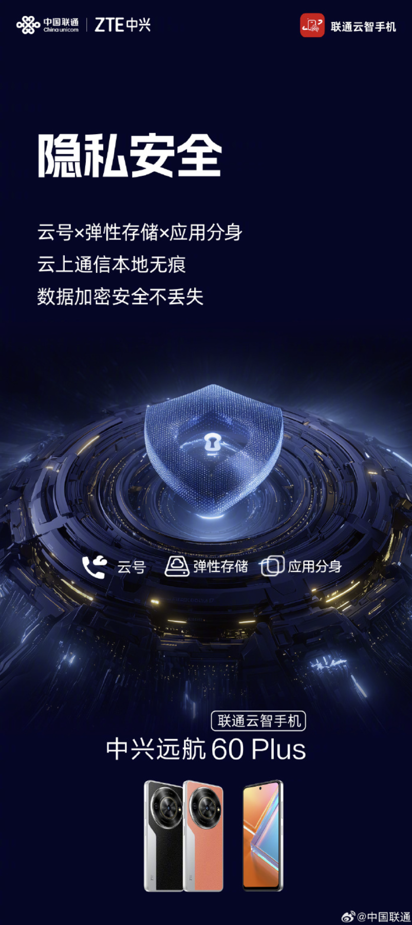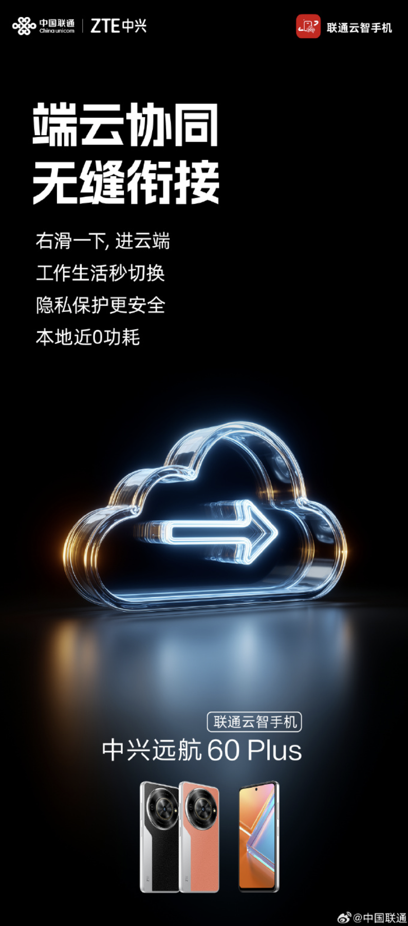 IT之家 7 月 19 日消息,据中国联通官方微博,中国联通现已联合中兴推出一款远航 60 Plus 手机,该机搭载联通云智 OS,主打“云体验”,参考官方介绍,该机提供“云号码 + 云端弹性存储 + 应用分身”功能,号称可解决“手机内存不足、下载速度慢”等问题,实现“1T 云机装游戏 + 2T 云盘装照片”。