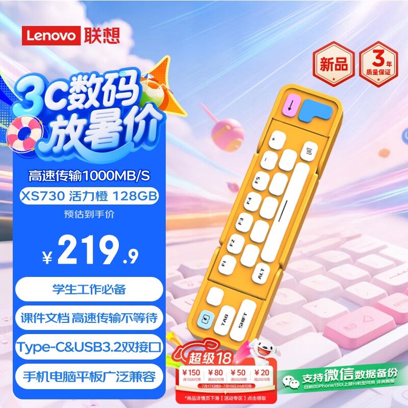 IT之家 7 月 19 日消息,联想现在已在京东上架一款键盘造型的小新 U 盘,可选多种配色,提供 128GB-1TB 容量,可选两种传输速度,IT之家整理价格如下: