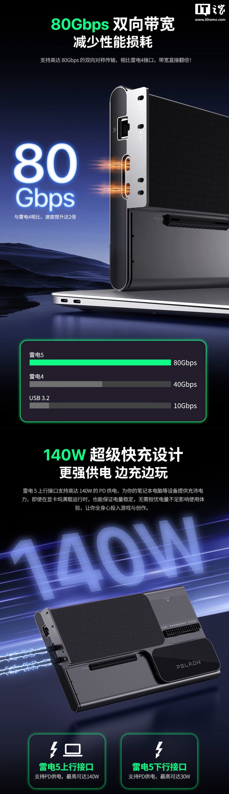 IT之家 7 月 19 日消息,磐镭旗下 Link S-3 显卡扩展坞现已上架京东,该扩展坞拥有双路雷电 5 接口,定价 1449 元,将于 7 月 26 日首销。