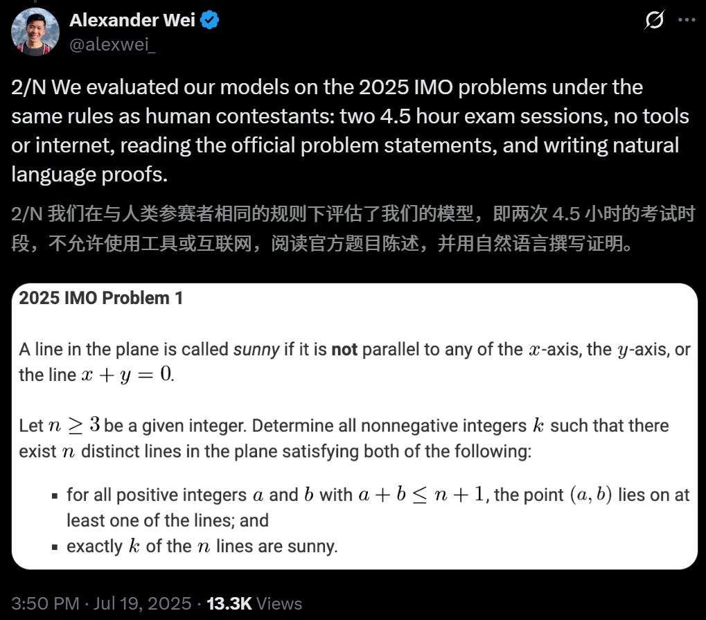 Alexander Wei 和他的团队,让模型在与人类完全相同的条件下进行比赛:
