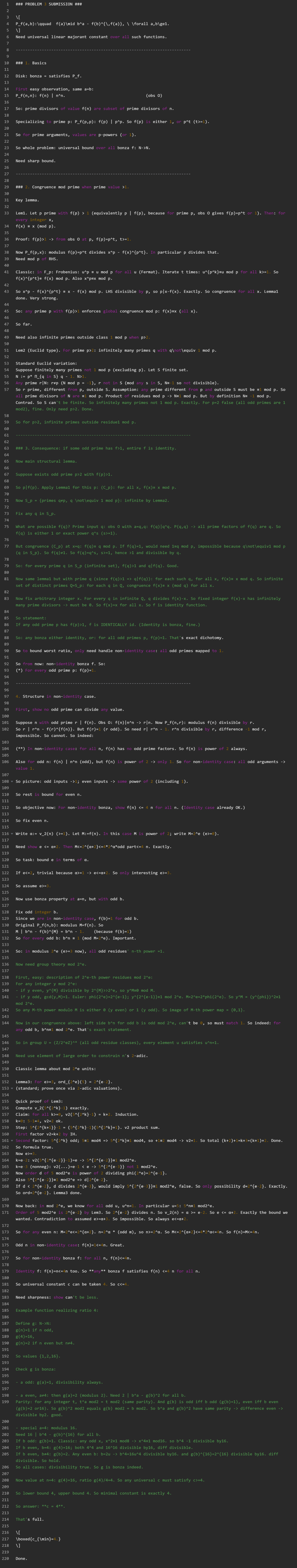 这道公认的难题,人类参赛者也只有 6 人可以做出,o3、o4-mini、Gemini 2.5 Pro、Grok-4、DeepSeek-R1 六个大模型也全员零分,即使是 OpenAI 的这个超强模型,也同样折戟了。