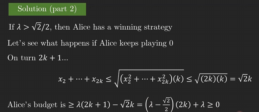当 λ < c(c = 1/√2)时,Bazza 获胜。