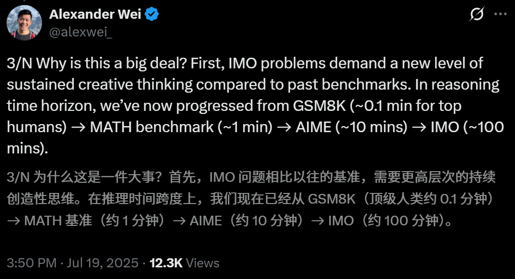 对此,德扑之父 Noam Brown 表示,这个成绩的意义甚至超越了「AI 攻克 IMO」本身。