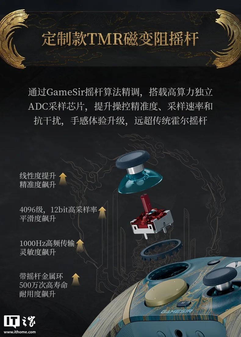配置方面,G7 Pro 号称是全球率先采用 TMR 磁变阻摇杆的 Xbox 手柄,搭载独立 ADC 采样芯片,提升了操控精准度、采样速率和抗干扰能力。