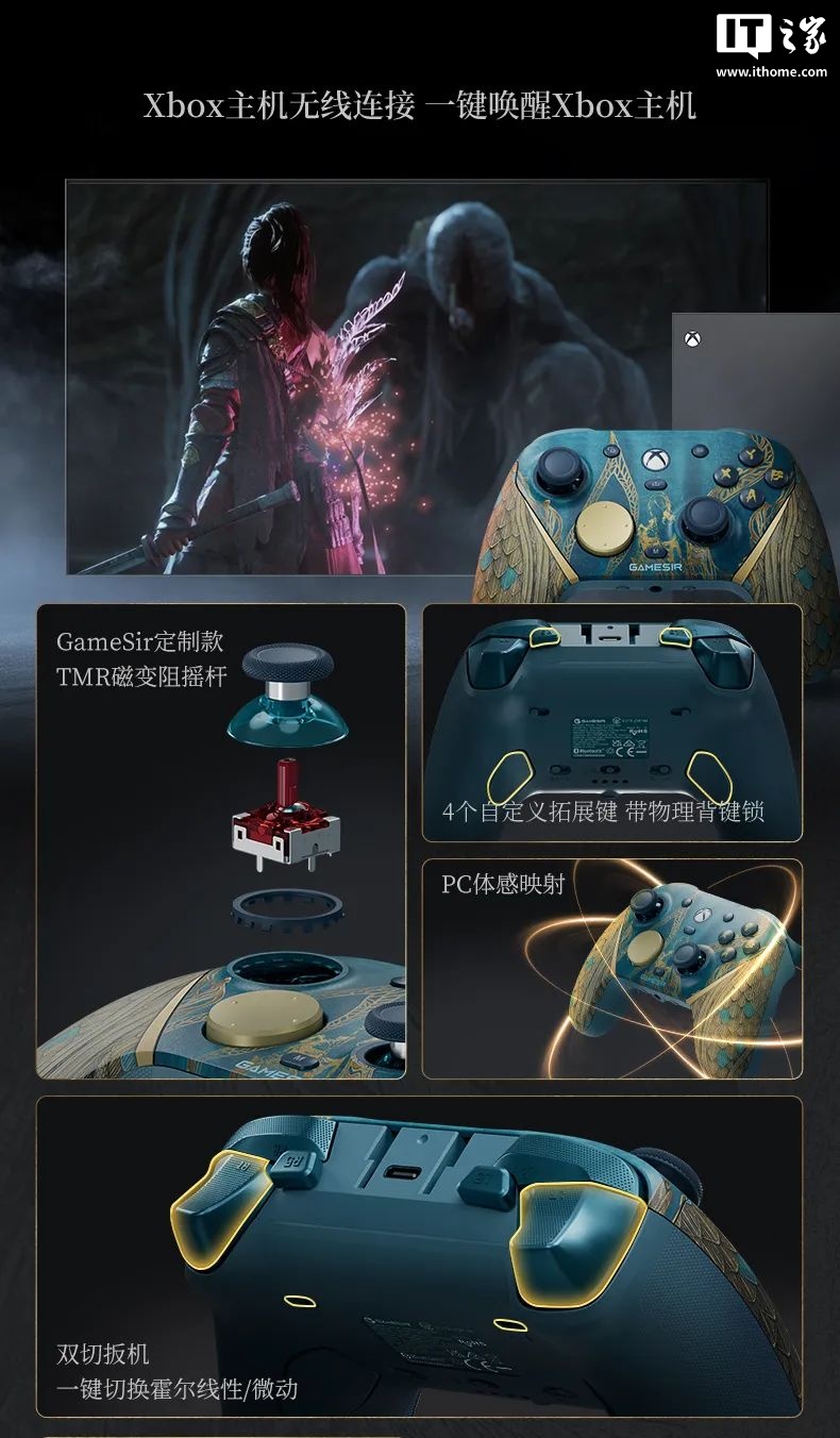 微软授权无线 Xbox 版小鸡 G7 Pro《明末:渊虚之羽》联名款手柄现已上市,售价 599 元(比普通版贵 100 元),IT之家附参数表如下: