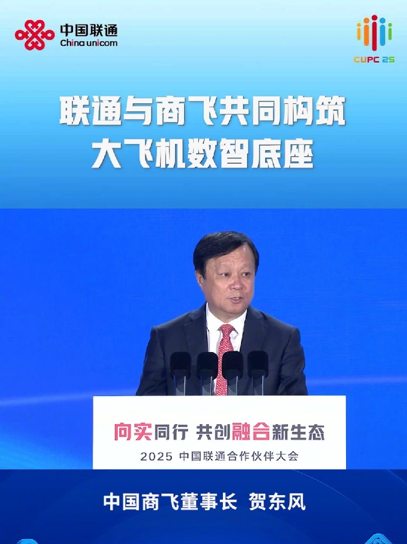 IT之家 7 月 20 日消息,据中新社报道,中国商飞董事长贺东风 7 月 19 日在 2025 中国联通合作伙伴大会上称,中国国产大飞机已经进入产业化发展的新阶段,中国商飞将持续推进 5G、人工智能在大飞机产业中的落地应用。
