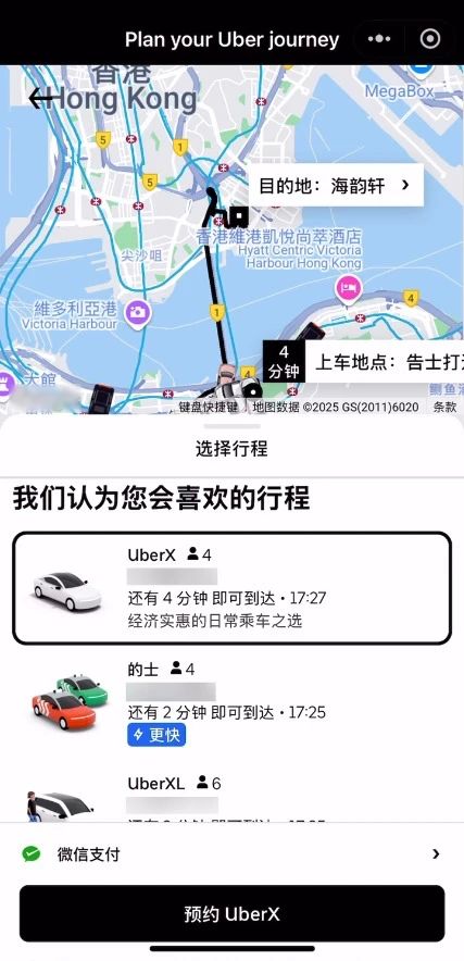 IT之家从官方介绍获悉,在小程序内打车后,能直接通过微信付款,支持微信支付及 WeChat 港币钱包。
