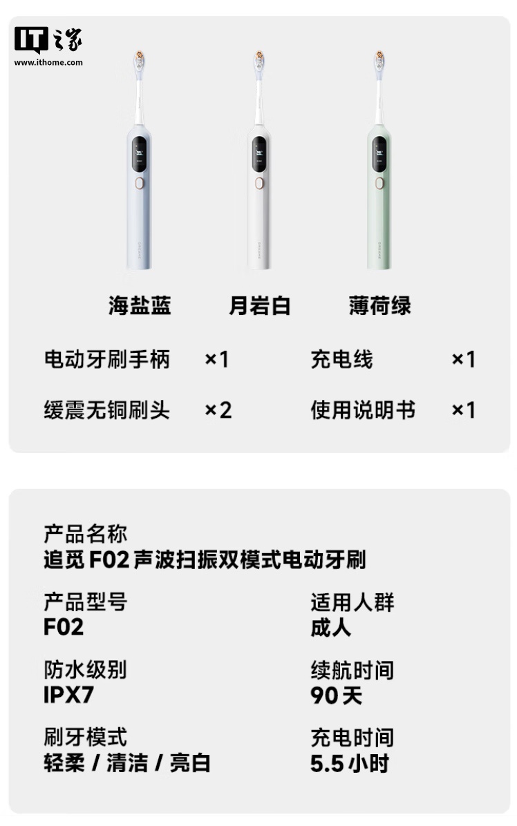 IT之家附牙刷参数如下: