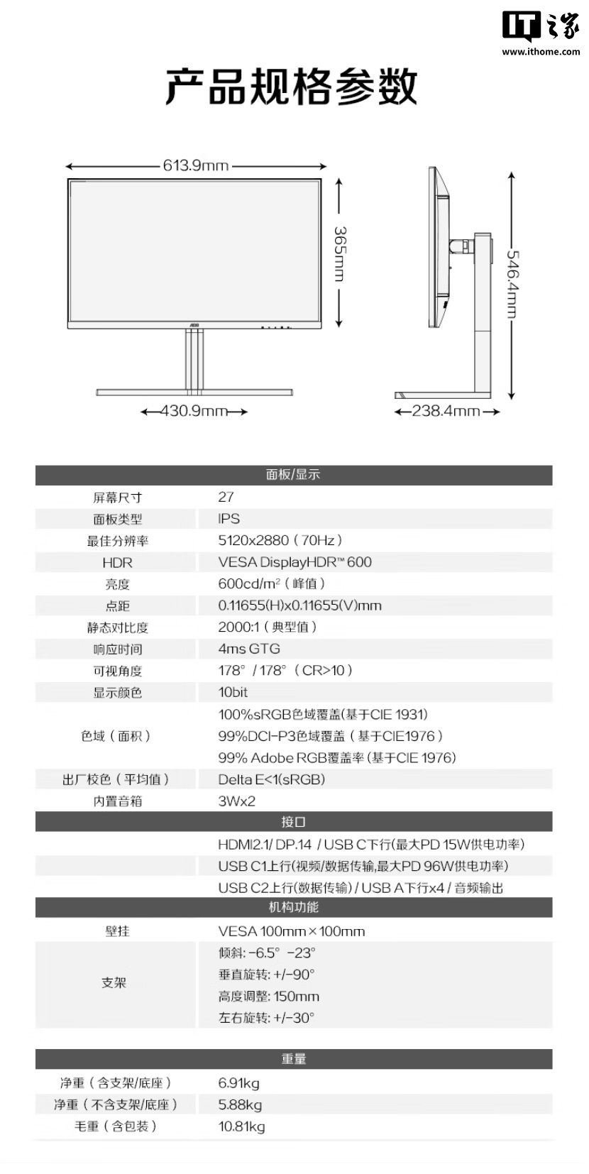 IT之家附显示器参数如下: