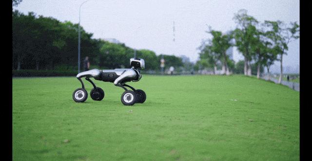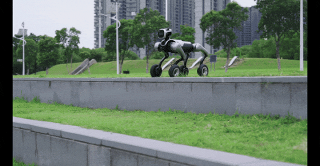 根据官方放出的演示视频,MagicDog-W 支持空翻、倒立、双向攀登,对于斜坡、高台阶等也能自如应对。