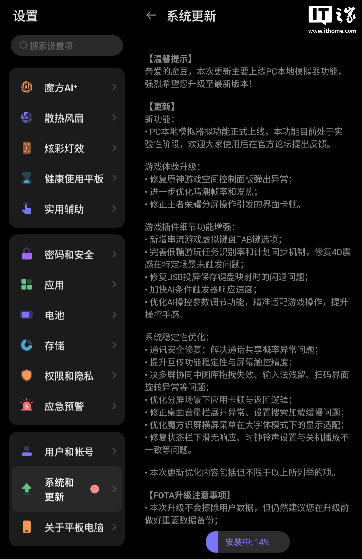 IT之家附红魔电竞平板 3 PRO 更新内容如下: