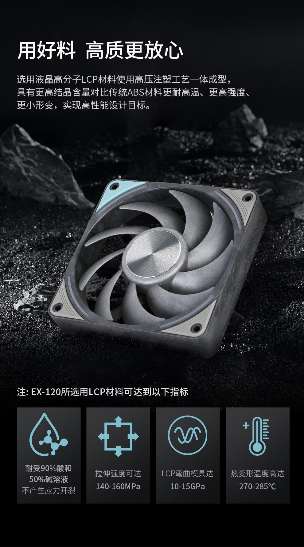 IT之家 7 月 24 日消息,LCP 液晶聚合物以其高刚性、高抗拉强度、低蠕变的特性被视为良好的风扇制造材料,越来越多的 PC 散热企业开始在高端风扇产品线中使用 LCP。