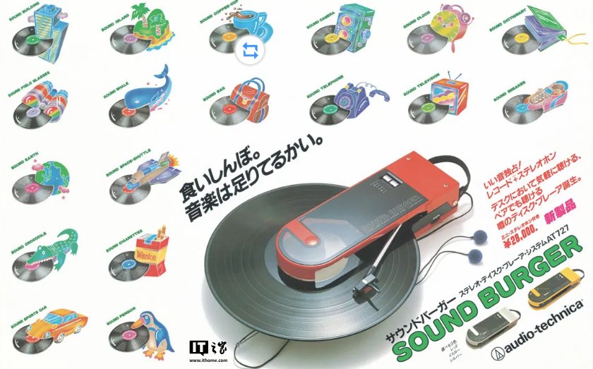 20 世纪 80 年代初,铁三角推出了一款便携式黑胶唱片机产品一一 Sound Burger,采用标志性的“夹取”唱片方式,酷似汉堡造型,因此获得了“声音汉堡”的昵称。